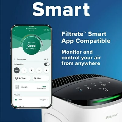 Ready for a connected, seamless way to improve your indoor air quality at home? This Filtrete Smart Air Purifier is Wi-Fi enabled and can automatically monitor and clean your air 24/7 in large rooms. Control the device with your smartphone and keep tabs on air quality with the Filtrete™ Smart App and Amazon Alexa.