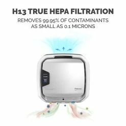 Four-stage H13 True HEPA filter effectively removes 99.95% of particles as small as 0.1µm, including allergens such as pollen, dust, pet dander, and smoke