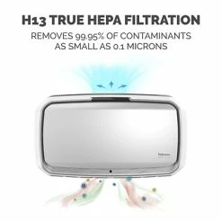 Four-stage H13 True HEPA filter effectively removes 99.95% of particles as small as 0.1µm, including allergens such as pollen, dust, pet dander, and smoke