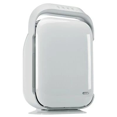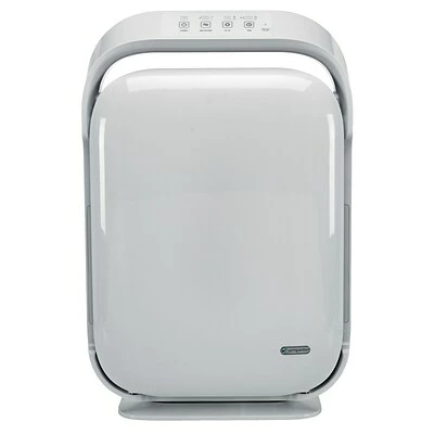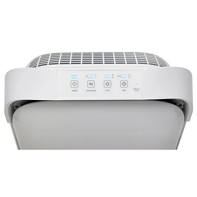 Allergens, germs and odors, beware! The Hi-Performance Air Purifier is ideal for allergy sufferers. A True HEPA filter relieves allergies by capturing 99.97% of dust and allergens down to .3 microns. A large activated granular carbon filter attacks smoke, cooking and pets odors along with harmful VOC’s emitted by common household products. UV-C light technology kills germs and mold spores. An optional ionizer can be turned on to boost allergen control. The purifier is ideal for rooms up to 378 sq. feet. CADR ratings are high with 244 (smoke); 310 (dust) and 346 (pollen).