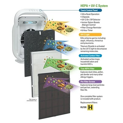 Optional UVC light technology works with titanium dioxide to reduce airborne bacteria, viruses, germs, and mold spores