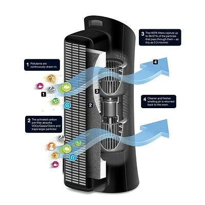 Helps capture up to 99.9% of certain bacteria and virus** and harmful VOC’s and odors with activated carbon pre-filter
