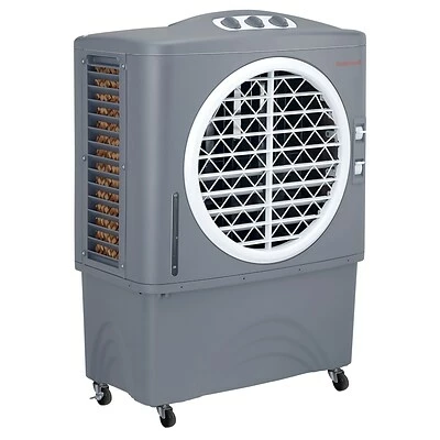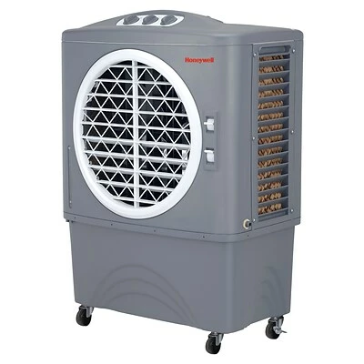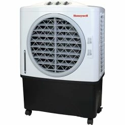 Honeywell® Evaporative air cooler in white/gray color features dehumidification up to 100 pints per hour with 3 speed control that has high/medium/low mode. Conditioner comes with 24 hr on/off timer and is ideal for indoor usage.