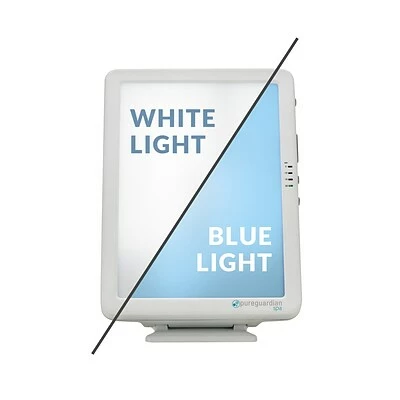 Start your day on the bright side with the PureGuardian SPA Energy light. This energy light lamps provides up to 10,000 LUX of light to help you beat the winter blues. It is designed to provide you with full spectrum light exposure that is beneficial when daylight is limited or you spend a portion of your day in dimly lit surroundings. The SPA Energy light is UV free and includes features that allow you to customize the duration of your daily session, your preferred light intensity, blue or white tint and duration. The portable design allows you to set the light on the table or desk for use while you’re eating breakfast, planning your day, even working on your computer. And as an added benefit, a USB port is incorporated into the design so that you have an extra spot to charge your phone. No need to worry about buying or replacing bulbs, the SPA Energy light was designed with long lasting, LED lights. The white or blue tint option provides you with your preferred color and intensity.