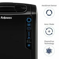The Fellowes® AeraMax® 190 Air Purifier uses 4-stage hospital-type filtration to effectively purify air in medium sized rooms 200 – 400 square feet. The AeraSmart™ Sensor monitors the air quality and automatically adjusts the fan speed to keep your air purified with ultra-quiet operation. A True HEPA filter with AeraSafe™ antimicrobial treatment safely removes 99.97% of airborne particles as small as 0.3 microns, including viruses, germs, pollen, ragweed, mold spores, and other allergens, while a carbon filter removes odors and captures large airborne particulates. AeraMax PlasmaTrue™ Technology is an optional setting that utilizes ionization to help safely remove airborne pollutants. AeraMax Air Purifiers also features Aera+™ Mode for 50% more air exchanges during allergy and cold/flu seasons. Backed by a 3-year manufacturer limited warranty.