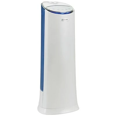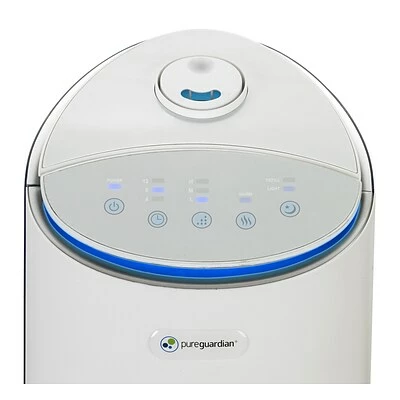 The 100-hour PureGuardian Ultrasonic Cool and Warm Mist Humidifier Tower enhances comfort, helping you sleep better. It provides quick relief from dry air making life pleasant for those with colds, allergies and dry skin. The space-saving tower design, with an easy-to-fill large 1.5 gallon tank, is ideal for use in medium size rooms. Unlike other humidifiers that grow slimy mold on the water tank surface, Silver Clean Protection is embedded in the tank to fight the growth of mold and mildew on the surface of the water tank. Thanks to ultrasonic technology, it disperses a fine mist into the air, and is ultra-quiet making it ideal to have on while you sleep. This tower humidifier has an optional aroma tray so a few drops of essential oil can be added to create a relaxing atmosphere. The humidifier is equipped with a 12-hour timer, a night light and variable mist control. An indicator light lets you know when it’s time to refill the water tank. The humidifier shuts off automatically once empty. Note: Run time is based off of running the unit on low speed, also depends on atmospheric conditions. PureGuardian aromatherapy oils are not included and must be purchased separately. Do not add oils to the humidifier tank as they can damage the humidifier and void the warranty. Only add essential oils to the pad that is included with the unit. Additional essential oil pads are available separately.