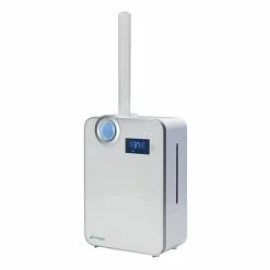 The 90-hour Ultrasonic Warm and Cool Mist Humidifier guards against dry air in the home. Features an easy to fill large 1.32 gallon tank, ideal for use in medium to large rooms. Silver Clean Protection fights the growth of mold and mildew on the surface of the water tank. Ultrasonic technology disperses a fine mist and is ultra-quiet. Smart mist sensor monitors the level of humidity in the room and adjusts to your selected level. The humidifier is equipped with an easy to use digital display, a night light, timer and 3 speed mist control. It’s equipped with the option for warm or cool mist and extension wands. PureGuardian humidifiers create a better home environment for those suffering from colds, allergies and dry skin.