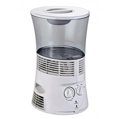 Optimus Cool mist evaporative humidifier features a distinctive tower and smaller foot print design to offer 500 – 700 sq.ft coverage area. Humidifier with 3 gal tank capacity has a dishwasher safe tray and operates up to 12 hrs.